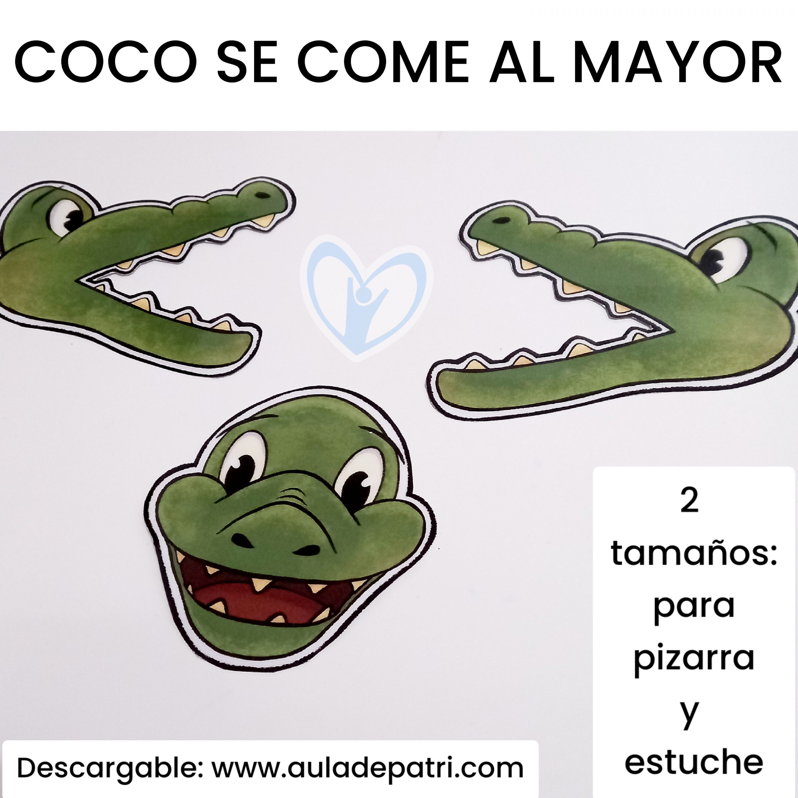 Coco es un cocodrilo muy comilón. Le encanta comer números o cantidades pero sólo los números mayores o las cantidades más grandes.